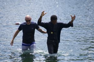 It was a gorgeous day and we did it (intentionally) at a public lake so that we could be a gospel witness to anyone around. We have since received reports that there was a positive buzz in the community, but not without questions of course. “What are those people doing down there?” “Are they a cult?!” “Why are they baptizing adults…isn’t that just for babies?”